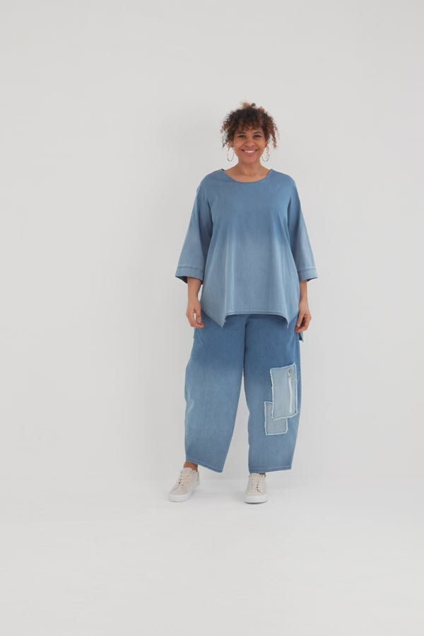 „Sky“ setzt auf entspannten Chic. Das lockere, gerade Bein schmeichelt der Silhouette und lässt Raum für Bewegung. Raw-Edge-Patches und die markante Zipper-Pocket am Bein sorgen für einen modernen Blickfang, die Ombre-Färbung verleiht Tiefe und Frische. 98% Baumwolle garantieren angenehme Atmungsaktivität, 2% Elasthan bringen genau den Stretch, der den ganzen Tag komfortabel bleibt – von City-Errand bis Café-Date.